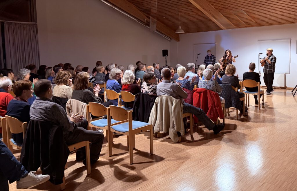 Die kultur-ecce e.V. präsentierte am Samstagabend ein stimmungsvolles Hautnah-Konzert im Dettinger Silcher-Saal. Zahlreiche Besucherinnen und Besucher waren der Einladung gefolgt, um einen Abend voller Musik, Witz und schwäbischem Charme zu erleben.